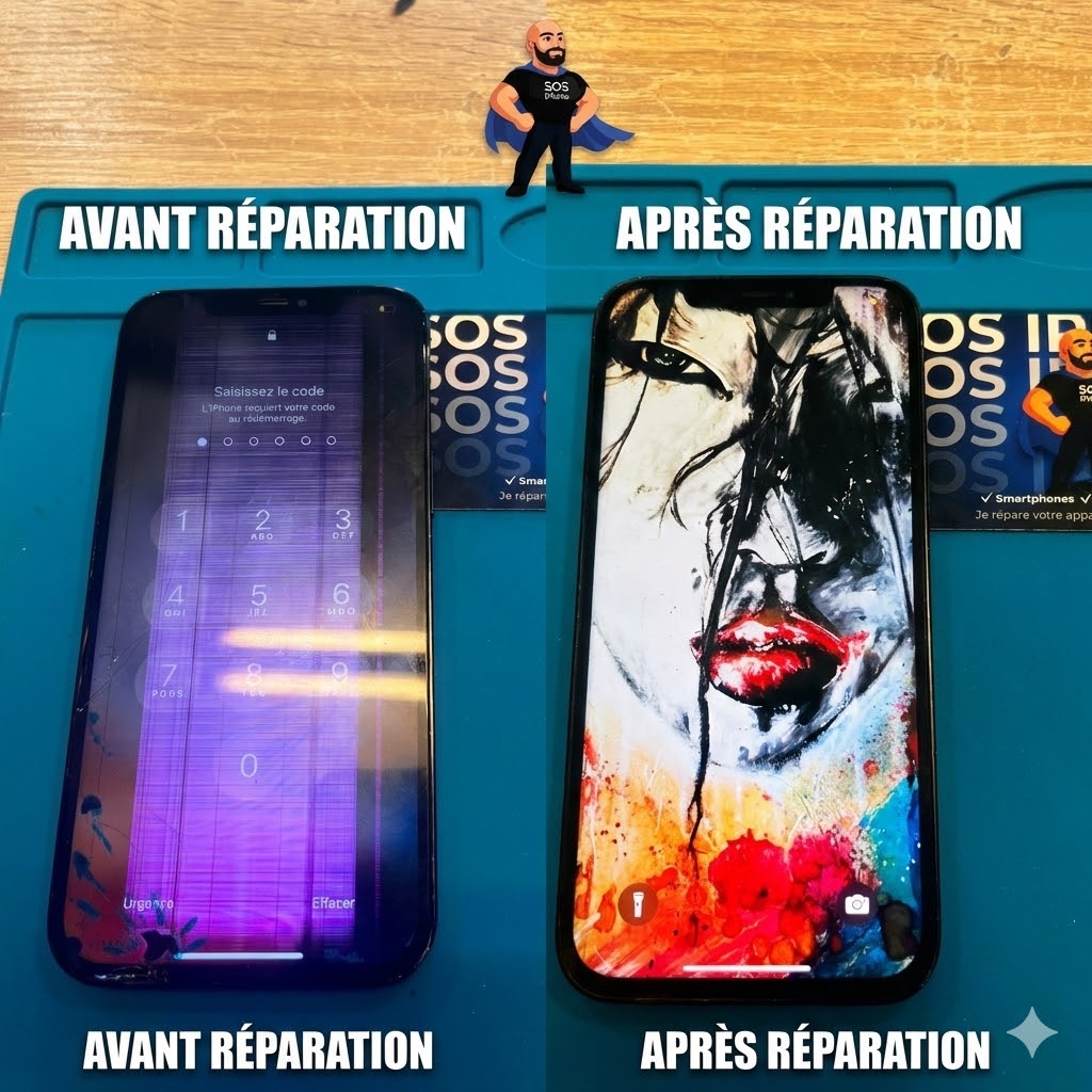 Je commence par un diagnostic gratuit pour confirmer que c'est bien l'écran qui est en cause. Je vous annonce le prix avant de commencer. Le remplacement prend 15 à 30 minutes selon le modèle. Avant de vous rendre votre iPhone, je teste le tactile sur toute la surface, la luminosité automatique, le True Tone et le Face ID. Vous repartez avec un appareil fonctionnel à 100 % et une garantie 6 mois.